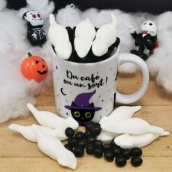 Mug Bonbon Chat Noir – Mug Halloween Rempli De 10 Souris Et 100gr De Dragibus Noir