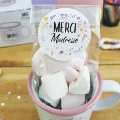Mug « Merci » Et Ses Guimauves Coeurs X10 – Cadeau « Merci Maîtresse »