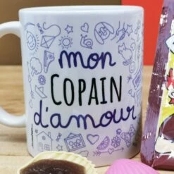 MUG « mon Copain D’amour  » Bonbons RĂ©tro 70 – Cadeau Copain