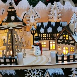 Village De Noel Lumineux En Bois – Lampe RĂȘve Hivernal – DĂ©coration De Noel
