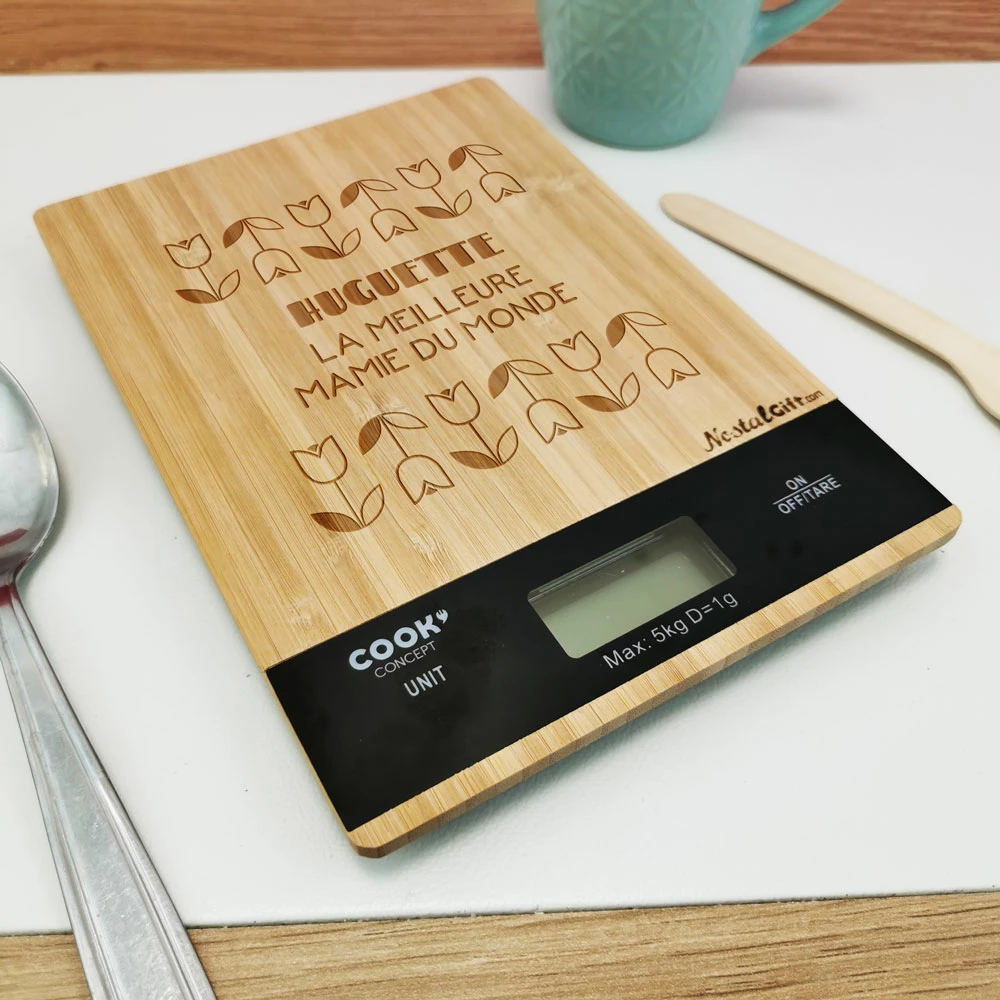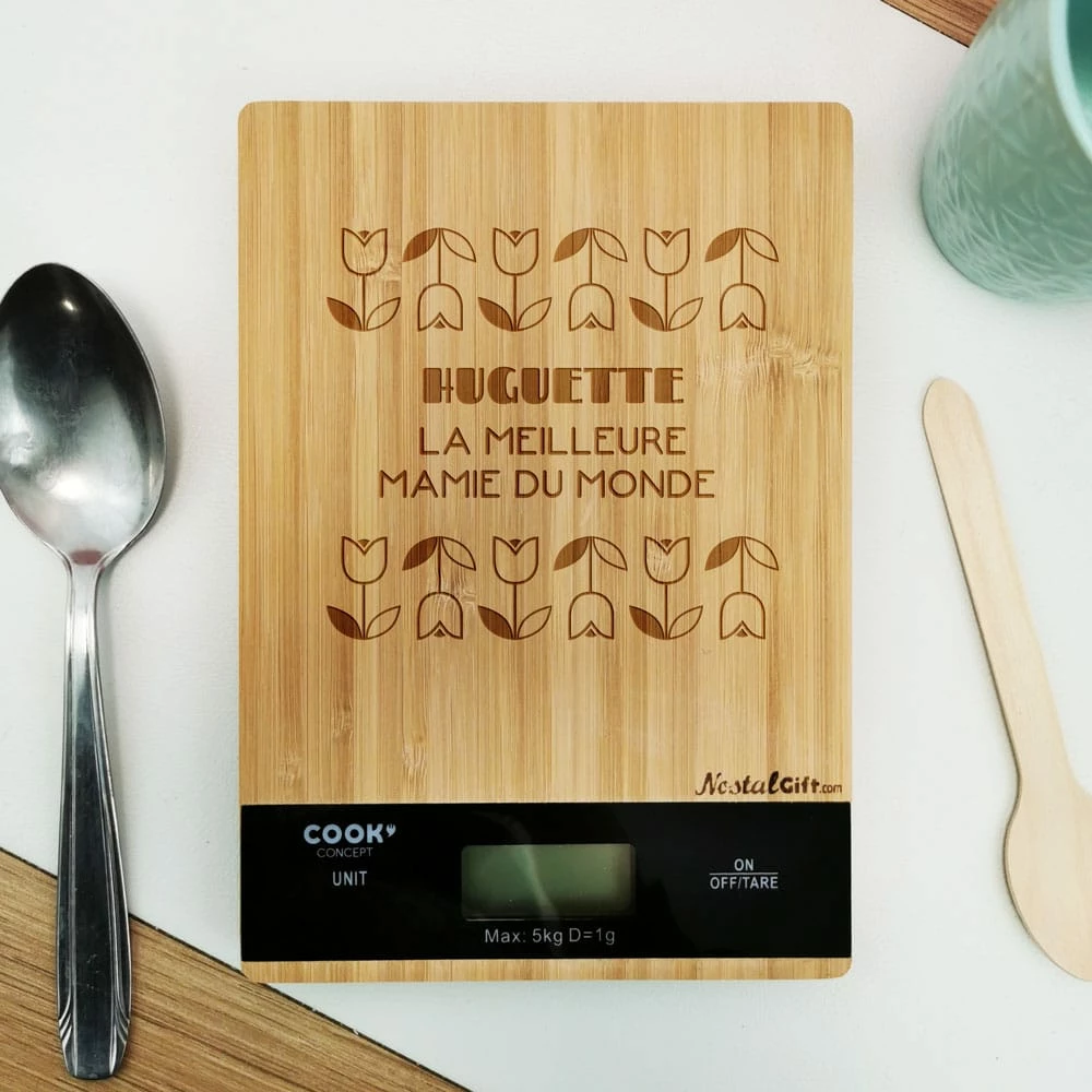 Balance en bois prénom personnalisable – “La meilleure mamie du monde”