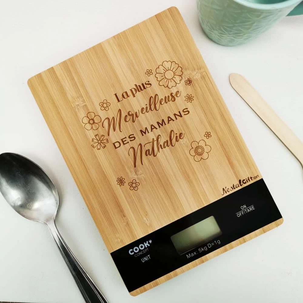 Balance en bois prénom personnalisable – “La plus merveilleuse des mamans”