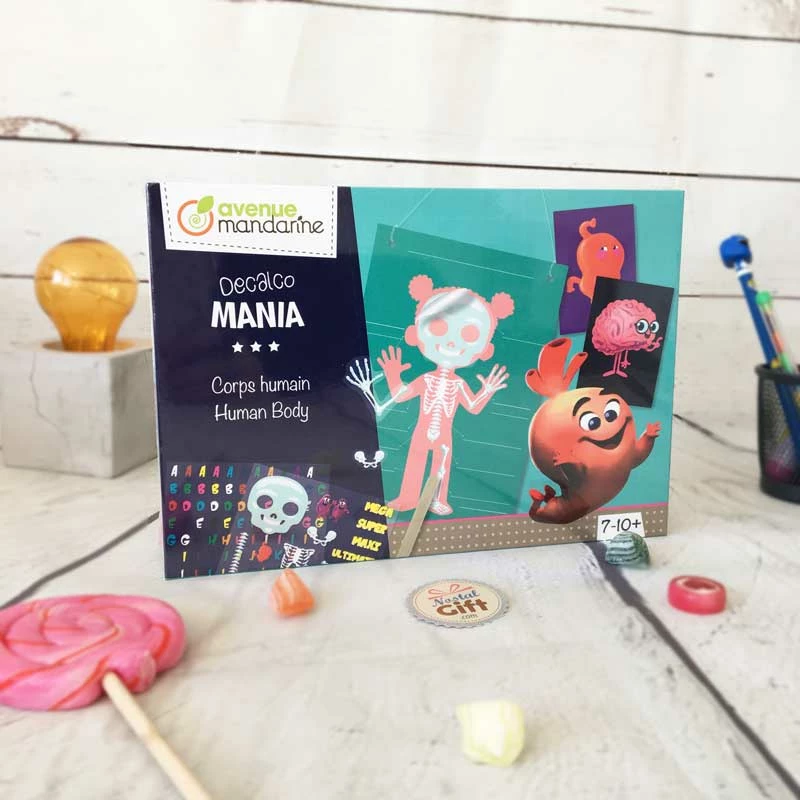 – contient : 2 planches de corps humain, un bâtonnet, 6 planches d’organes et des planches de décalco