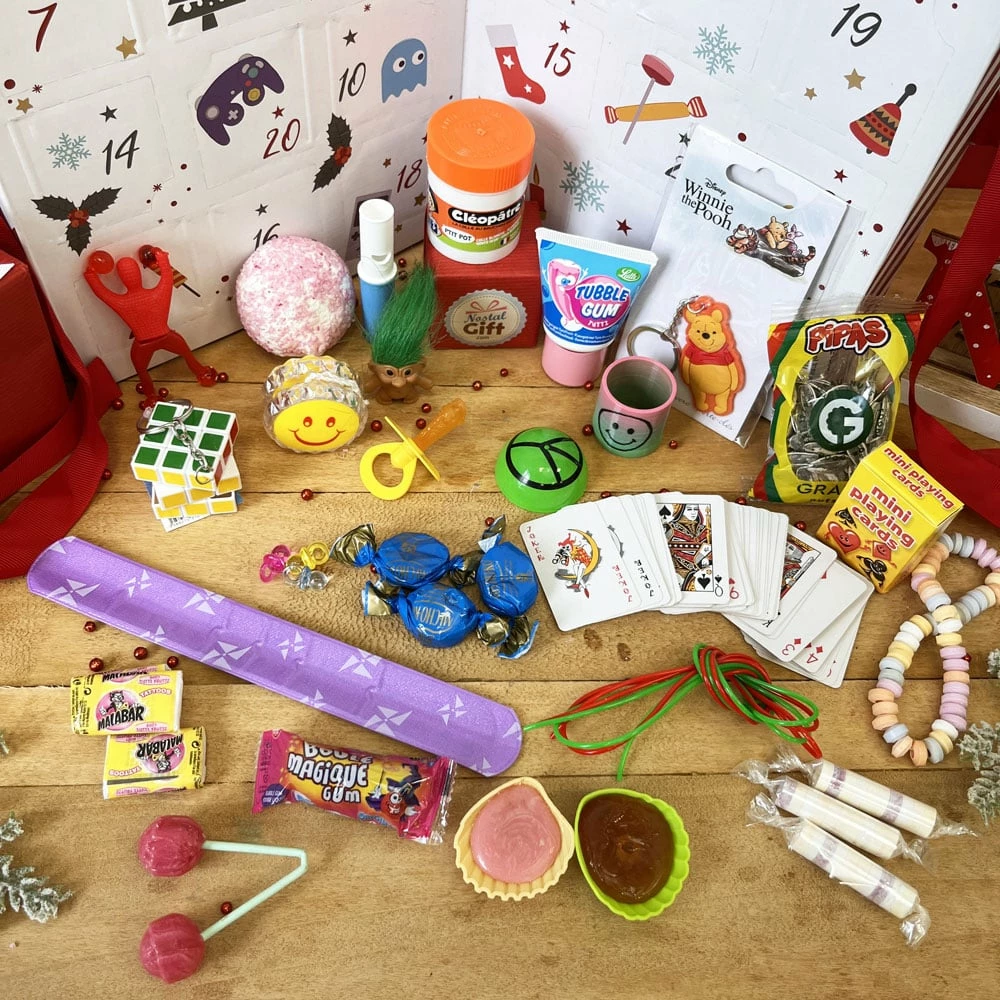 Votre Calendrier de lâavent â Bonbons et Jouets des AnnĂ©es 80 contient :Â