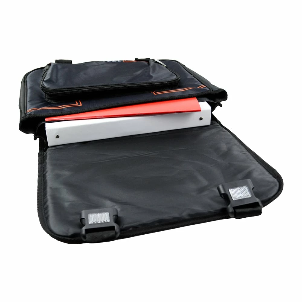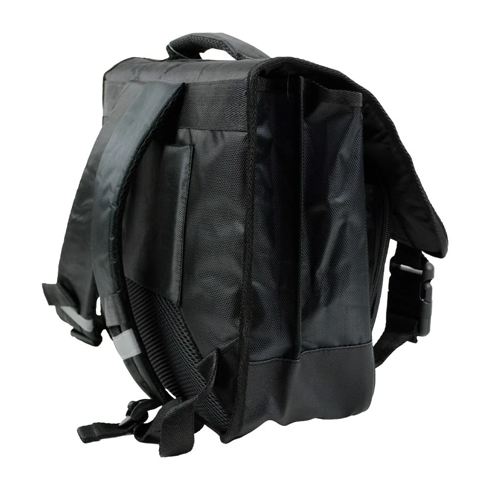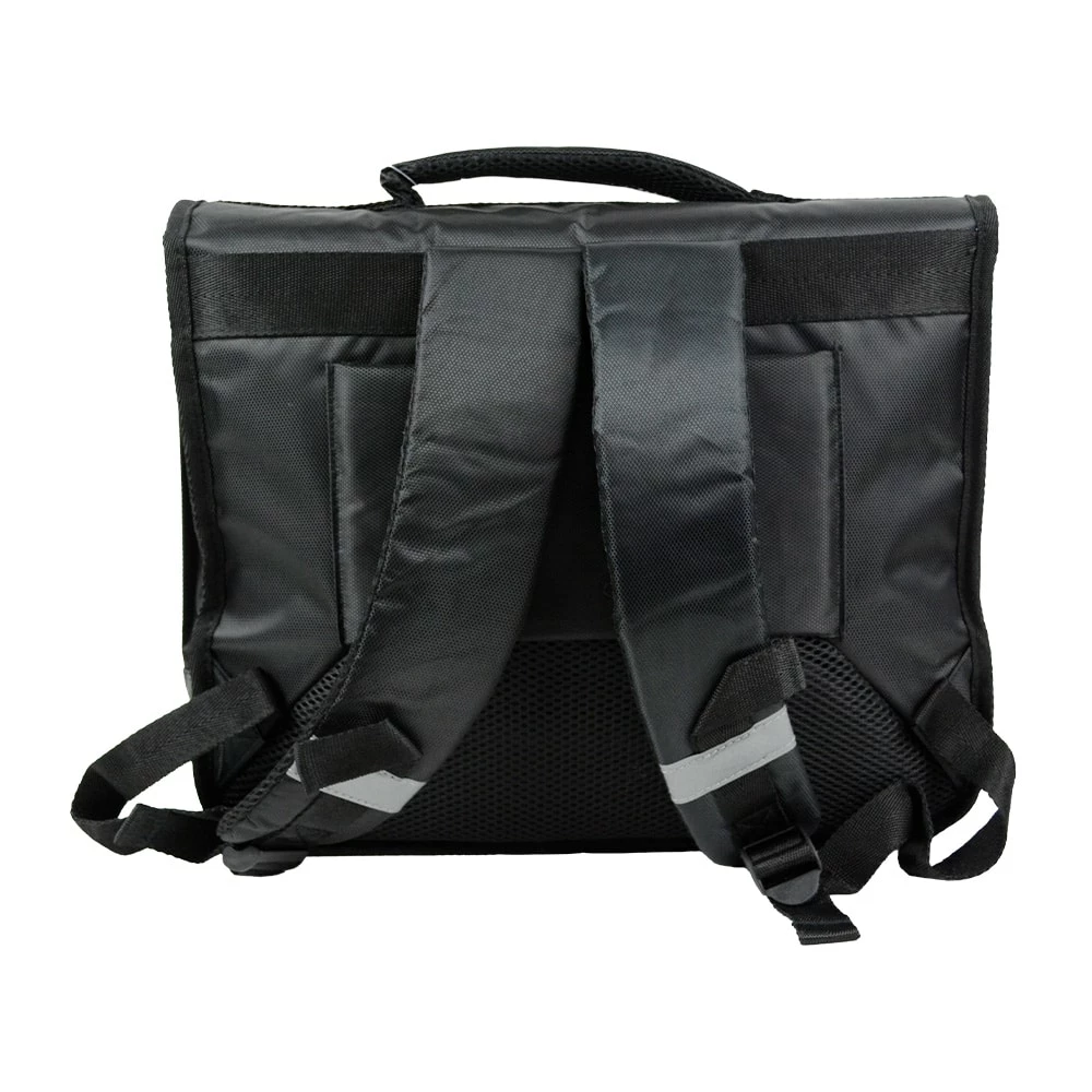 Points forts : Dos mousse renforcé, Bretelles ergonomiques avec mousse et mèche, Fond PVC noir, plastique réfléchissant à l’avant, Bandes réfléchissantes sur bretelles.