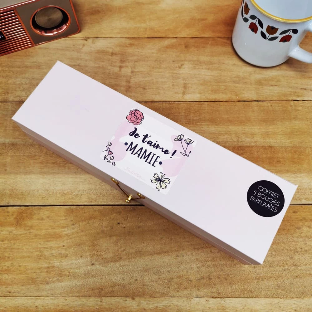 Coffret 5 bougies parfumées – “Je t’aime mamie”