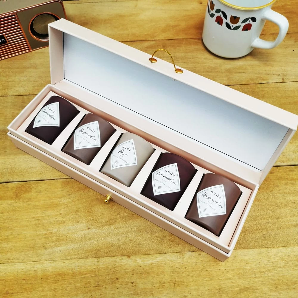 – Coffret contenant : 5 bougies parfumées en verre