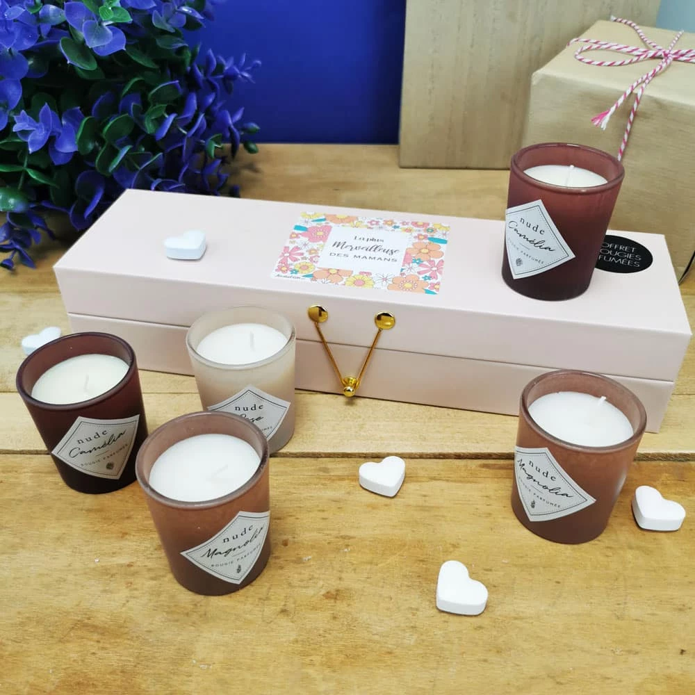 Coffret 5 bougies parfumées – “La plus merveilleuse des mamans”