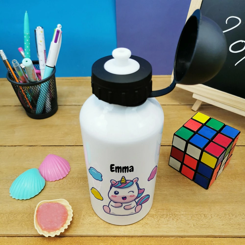 Offrez un peu de fraicheur grâce à cadeau au joli design pour une fille pour la rentrée scolaire ou fêter un anniversaire de votre fille avec cette gourde. Sur cet goudre il est écrit ” le prénom de votre enfant ” sur l’avant. Avec sa contenance de 500ml, cette gourde en métal est idéale pour un enfant grâce à sa légèreté.