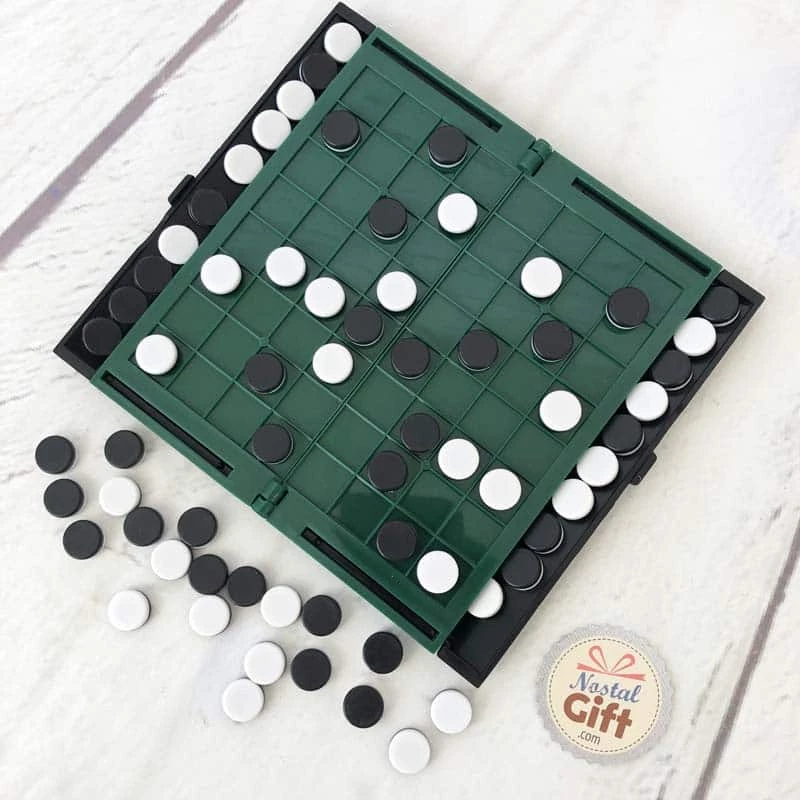 – Boite contenant : 64 pions bicolores, 1 othellier, 1 règle du jeu