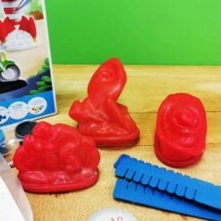 â Le coffret contient : 3 moules, 6 pots de peinture, 3 sachets de plĂątre (3x150g), 1 pinceau et les croisillons pour tenir les moules.