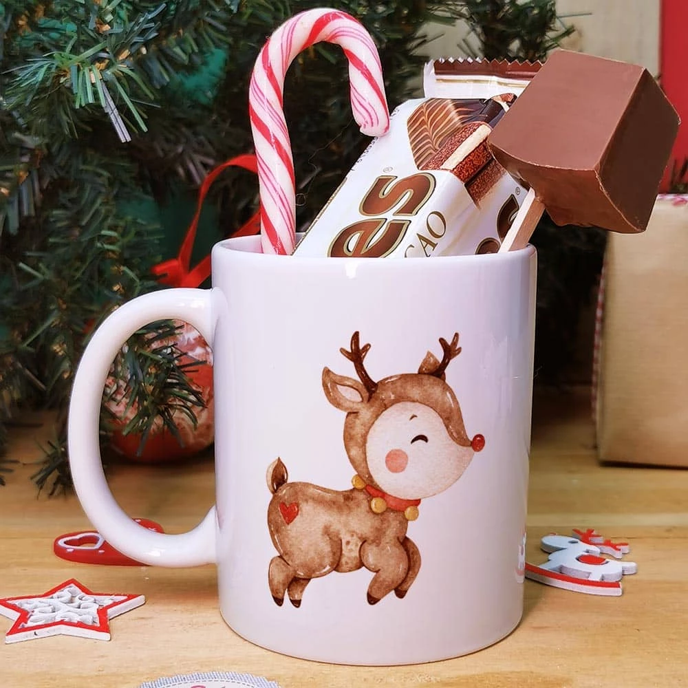 Une belle attention pour un cadeau de noel au joli design, vous allez faire plaisir à coup sûr avec ce mug au design de renne de Noël