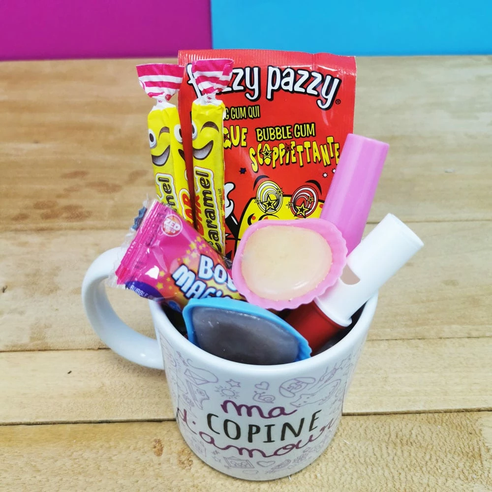 MUG “ma Copine d’amour ” rempli de bonbons rétro 80 – Cadeau Copine