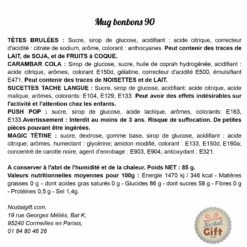 – Contient : 2 Têtes brûlées à la fraise, 2 Carambar au cola, 2 sucettes tache langue, 1 sucette Push Pop au cassis, 1 Magic tétine