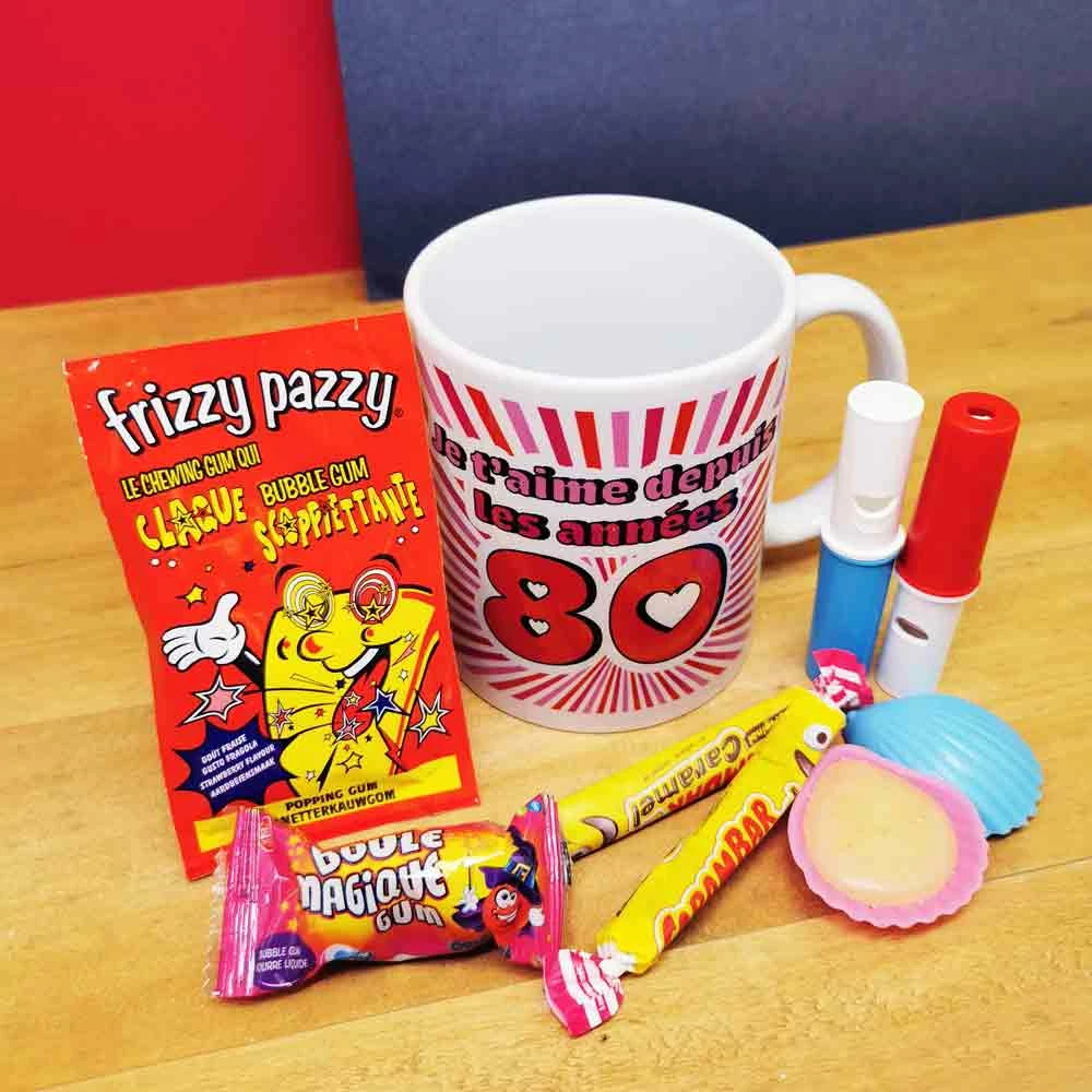 MUG rose “Je t’aime depuis les années 80 ” – Bonbons rétro 80