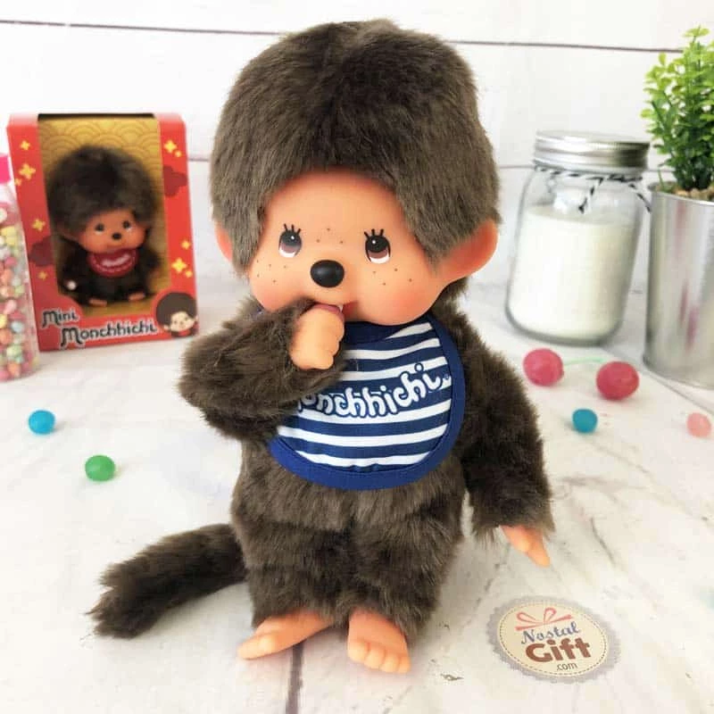Peluche Monchhichi Kiki bavoir marinière (20 cm)