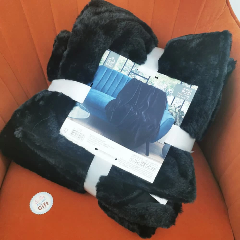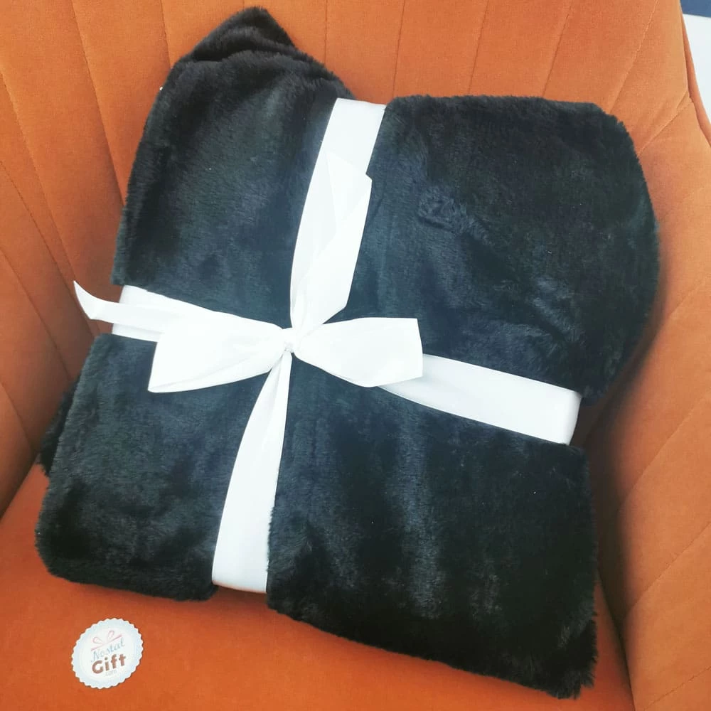 Plaid doux noir double face (poil long/poil court) 120X150CM