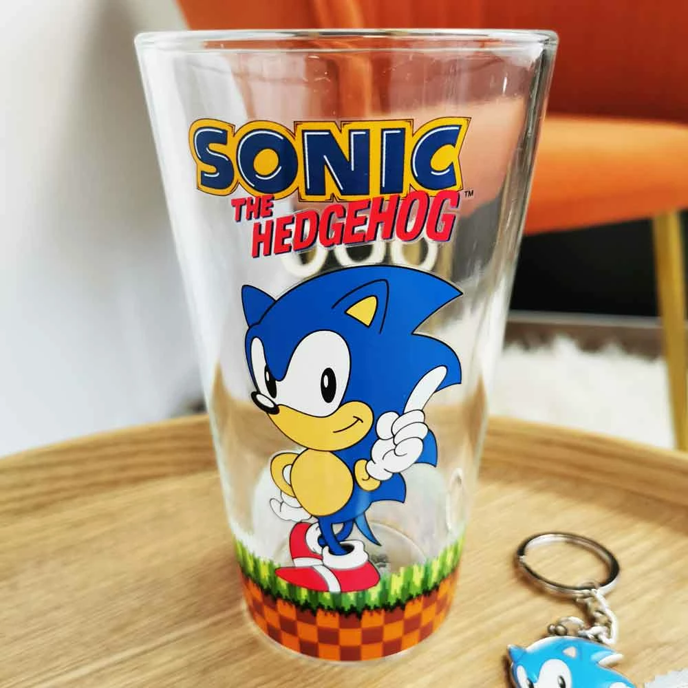 Sonic – Set 3 pièces – Verre, Sous-verre et Porte-clé