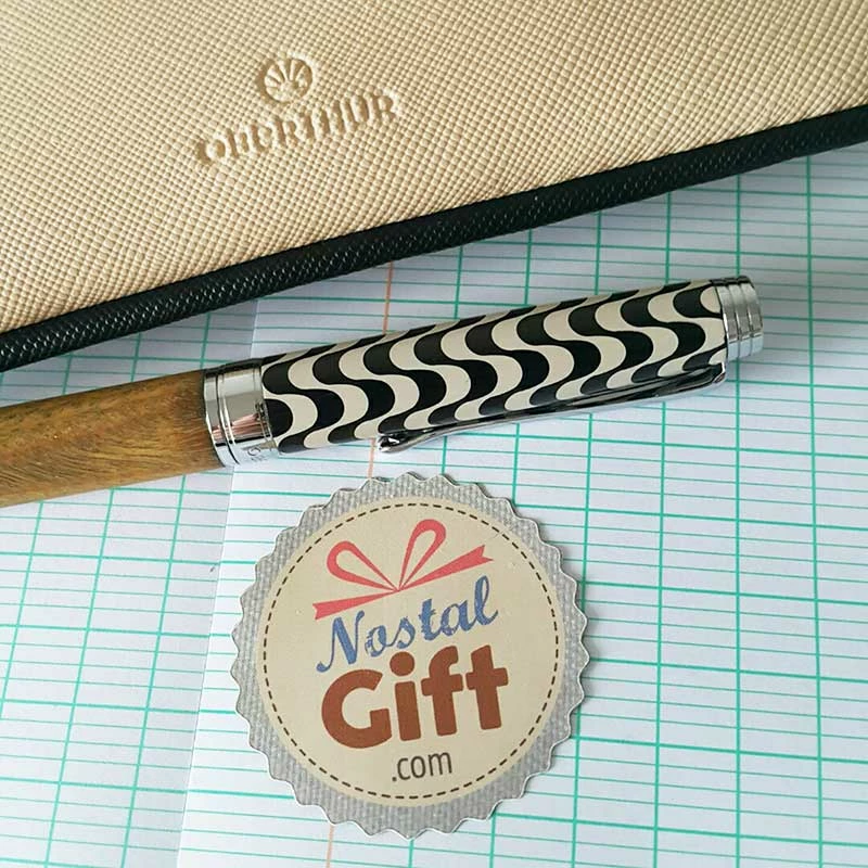 Stylo Roller en bois noir avec étui – Modèle Austin (Oberthur)