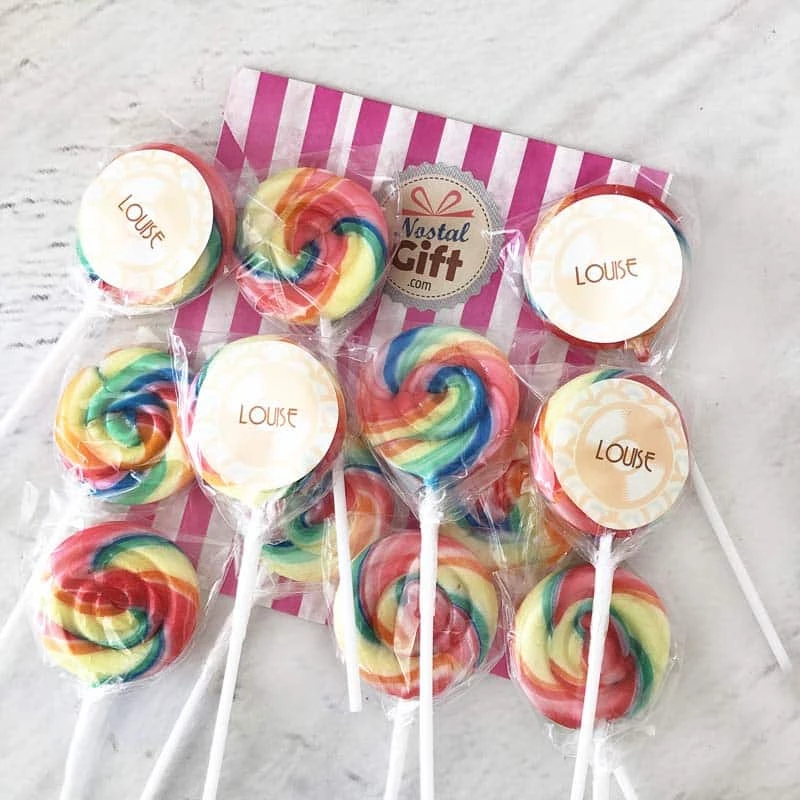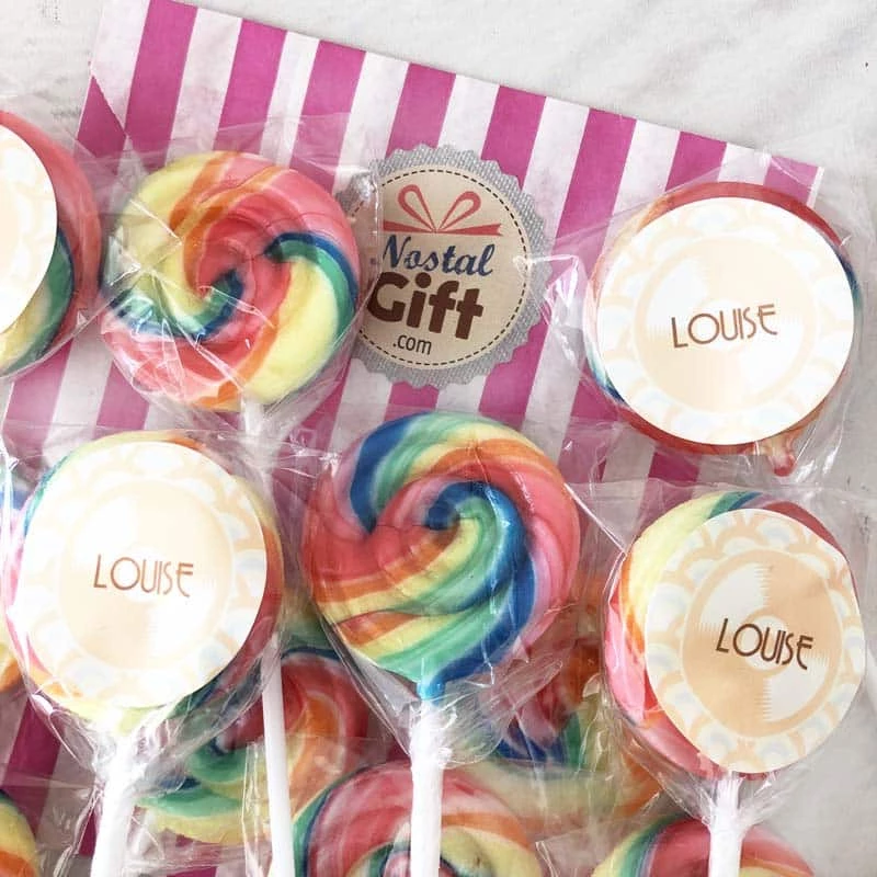 Sucettes rondes foraine personnalisées x12 – Anniversaire des années 60