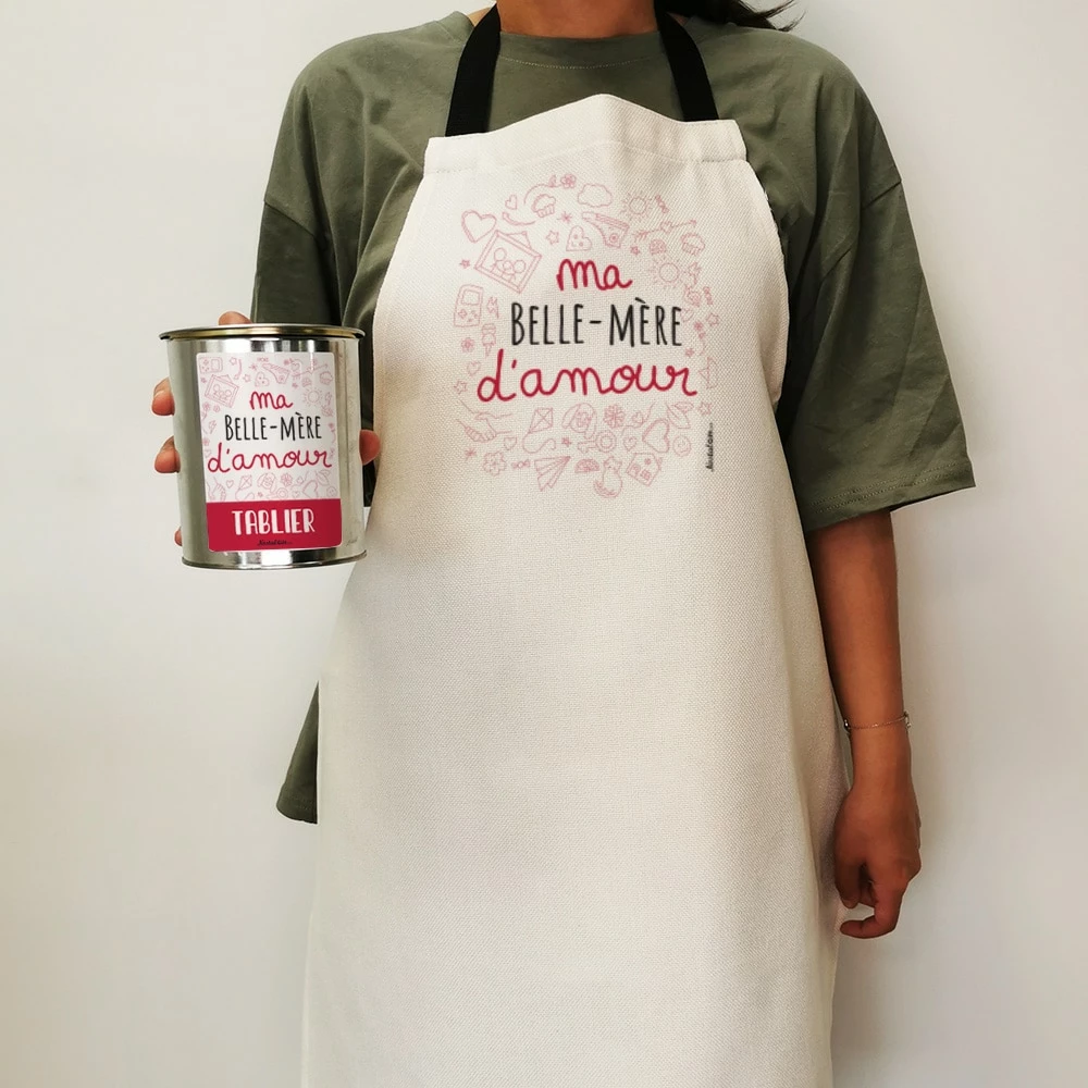 Tablier de cuisine Belle Mère d’amour de la collection D’amour – Cadeau pour fêter un anniversaire ou Noël.