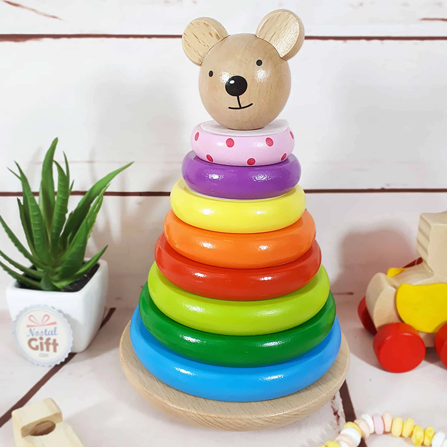 â Contient 8 anneaux + la tĂȘte de lâourson dĂ©boĂźtables
